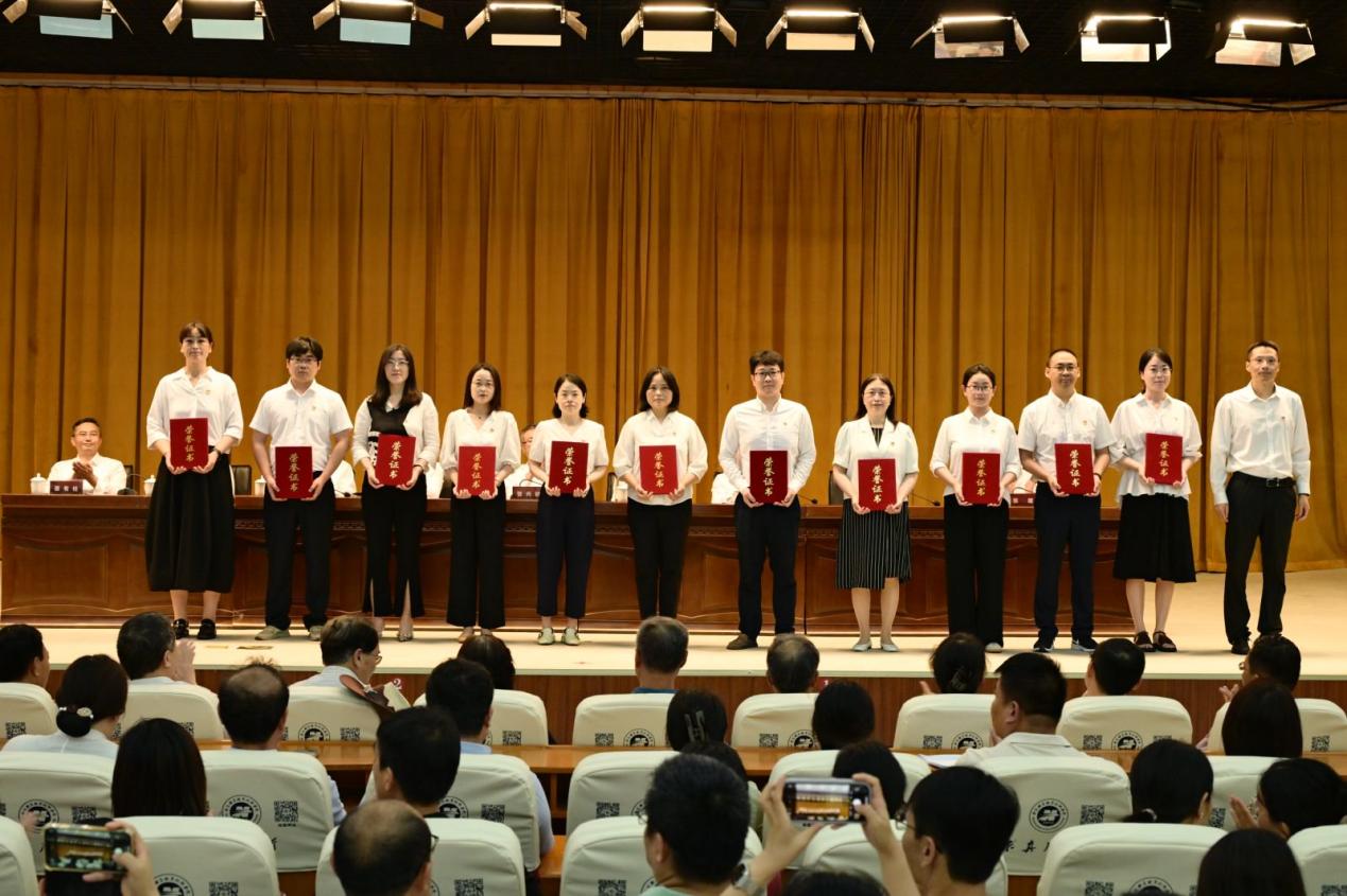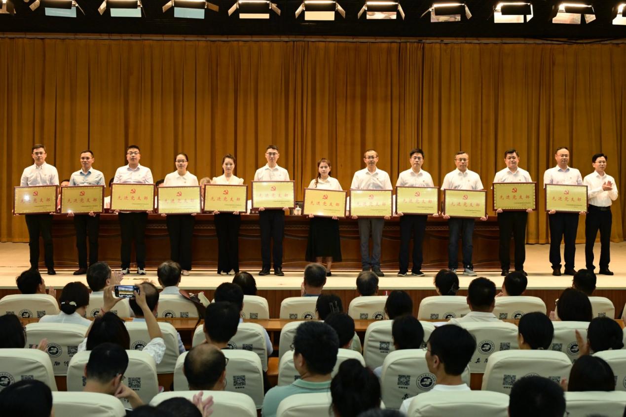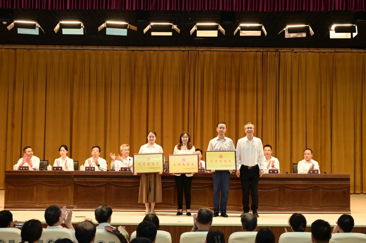 校领导分别为获得“先进党总支”“先进党支部”“党员先锋”“优秀共产党员”“优秀党务工作者”等称号的先进集体和优秀个人颁发奖牌和荣誉证书。