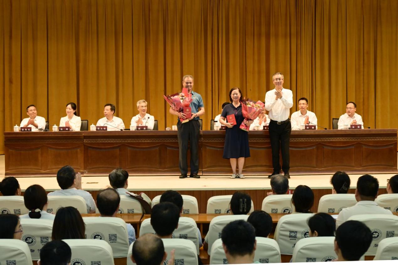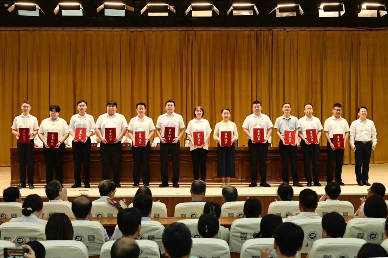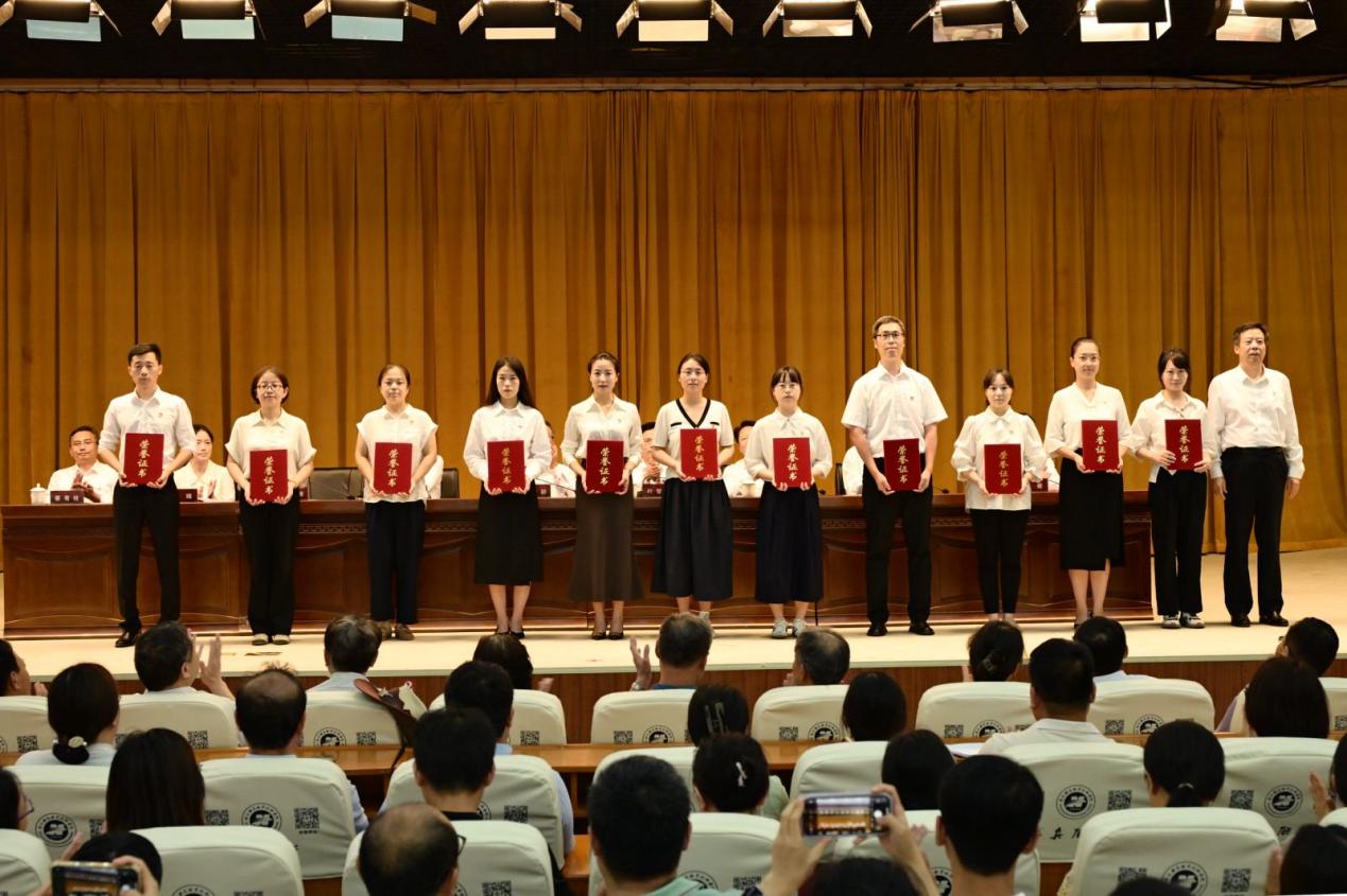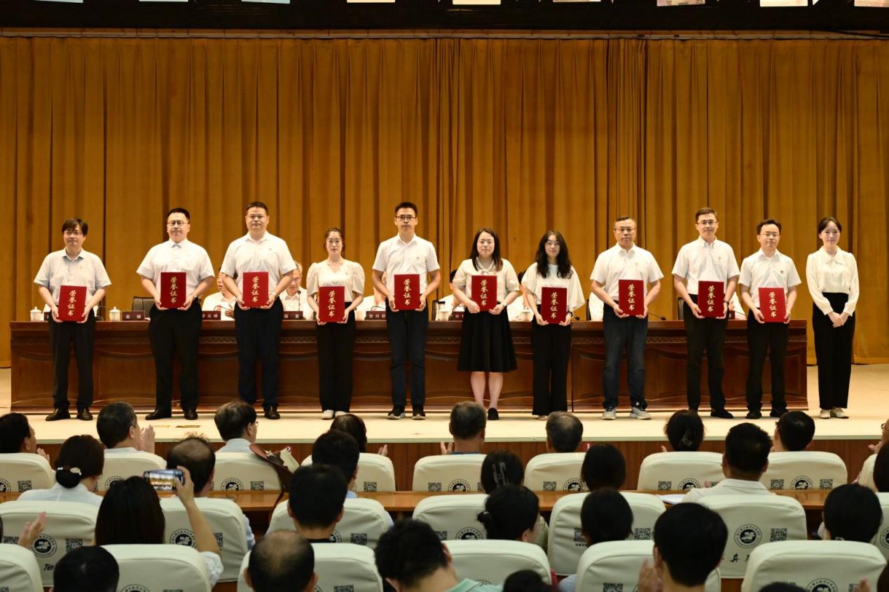 校领导分别为获得“先进党总支”“先进党支部”“党员先锋”“优秀共产党员”“优秀党务工作者”等称号的先进集体和优秀个人颁发奖牌和荣誉证书。
