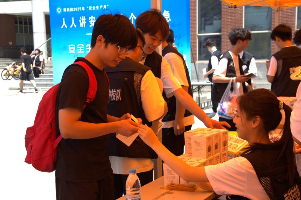 活动现场“人人讲安全,个个会应急——查找身边安全隐患”横幅高高悬挂;内容丰富的安全知识展板整齐排列,涵盖防范电信网络诈骗、消防安全、交通安全等多个领域,吸引师生驻足学习了解;在“安全知识趣味问答”环节,广大师生们兴趣盎然、踊跃参与。