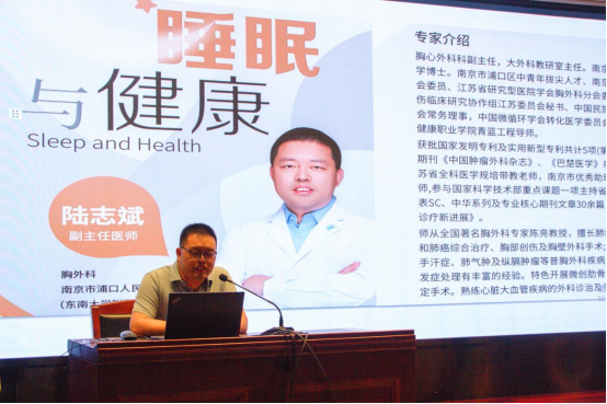 为配合推动“静夜有护、青春有度”活动深入开展,促进学生养成良好的作息习惯。5月28日下午,后勤管理与服务中心邀请南京市浦口人民医院胸心外科副主任、副主任医师陆志斌博士来校举办“睡眠与健康”主题讲座。各学院学生代表200余人参加。