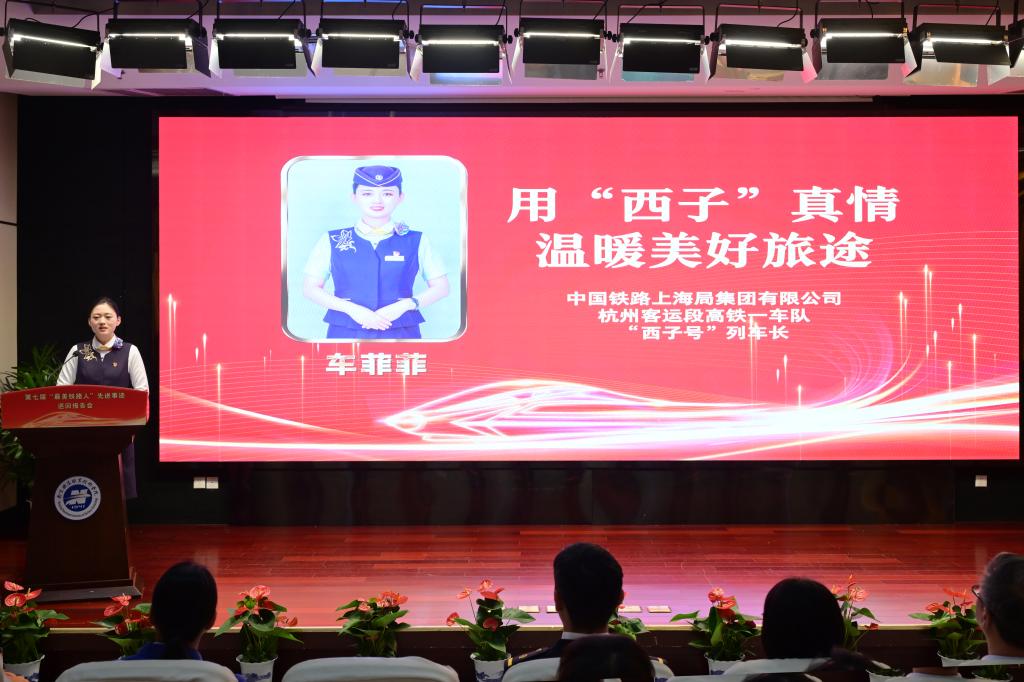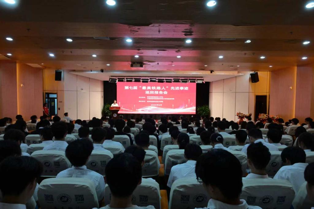 学习“最美”事迹,传承“最美”精神;弘扬“最美”风尚,凝聚“最美”能量。报告会上,立志要开最快的火车、当最好的司机的中国铁路济南局集团有限公司济南机务段动车组司机孔祥配,用“西子”真情温暖美好旅途的中国铁路上海局集团有限公司杭州客运段“西子号”列车长车菲菲,用焊花绘出人生华章的中国中铁高新工业股份九桥工程公司桥梁电焊工王中美等三位“最美铁路人”,以及来自中国铁路上海局集团有限公司的用29年为铁路“生命线”排除隐患的芜湖工务段探伤工邓志俊和用工匠精神守护铁路通信安全的上海通信段铁路通信工钱锋等两位“新时代·铁路榜样”,深情讲述了各自立足平凡岗位绽放不凡光芒的“最美故事”,引起了与会师生强烈共鸣。铁道运输学院专任教师黄越说:“报告团成员来自不同岗位,却共同诠释了新时代铁路人的卓越风采与责任担当。作为一名铁路院校的教师,我深感肩上责任重大。我更需将这份精神融入教学,为铁路行业培养更多有责任、有匠心的接班人。”高速铁路综合维修专业2023级学生余秀文说:“报告团成员的故事激励着我们南铁院学子,让我们懂得要心怀热爱、肩负责任、苦学本领,立志成为推动铁路事业高质量发展的正能量。”